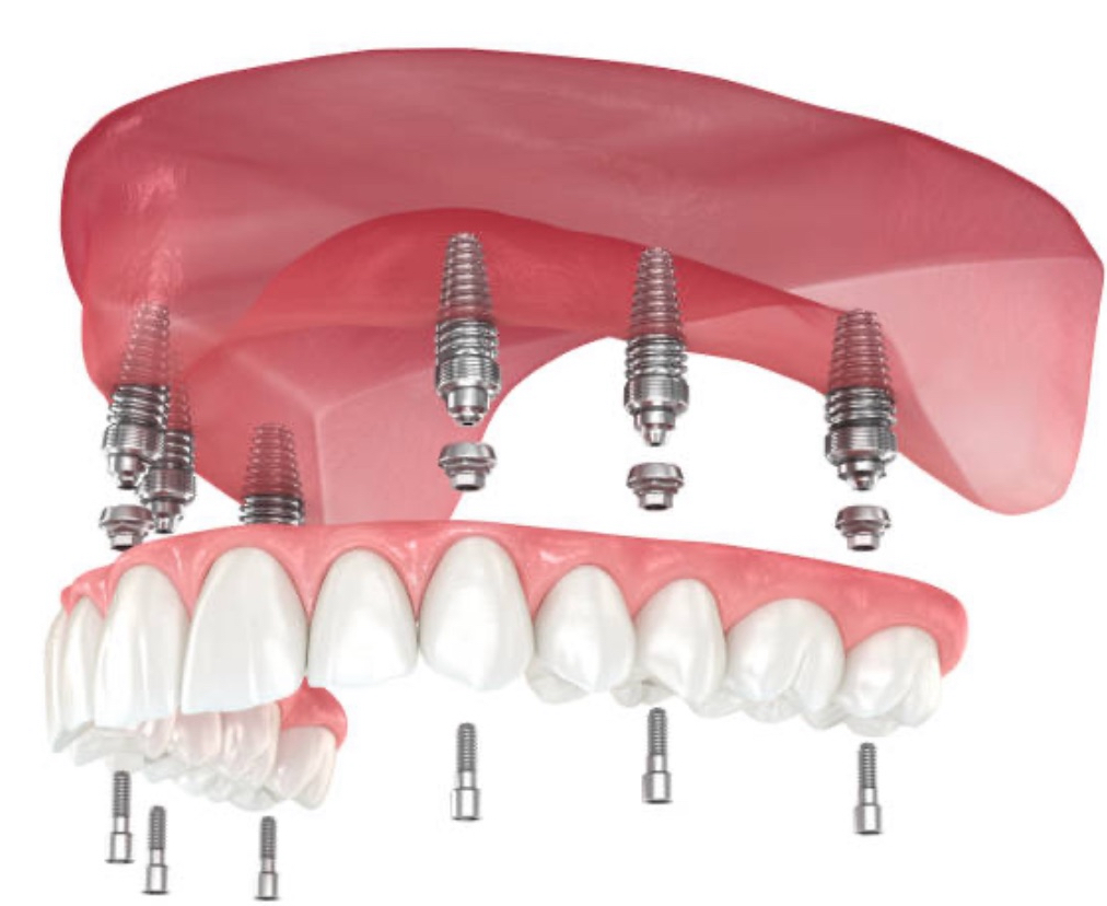 オールオン4、6という最新のインプラント治療法を提供しています。オールオン4とは、上顎または下顎のすべての歯を4〜6本のインプラントで支える方法です。